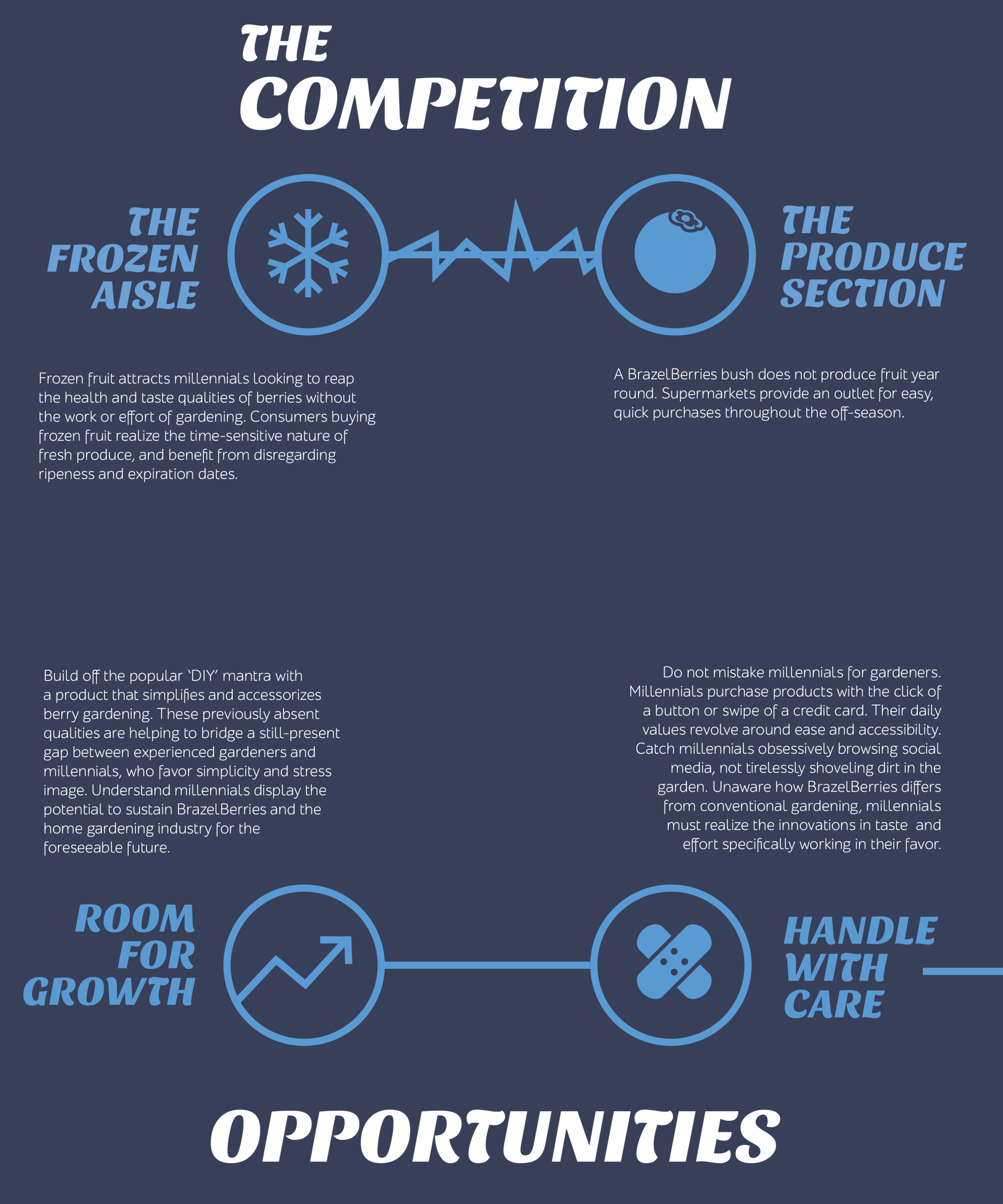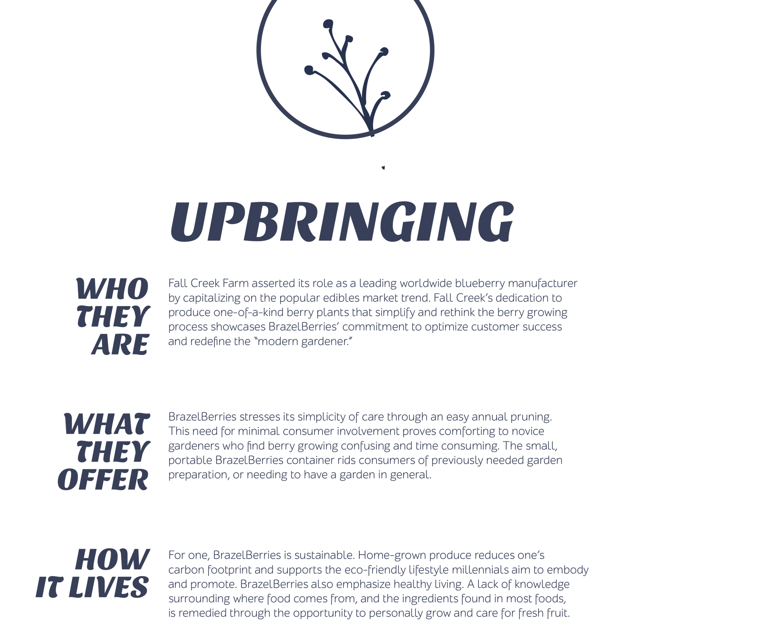 PROBLEM: The ease and convenience of grocery store berries is blocking awareness of the quality and benefits of the BrazelBerries brand to the powerful Millennial demographic.